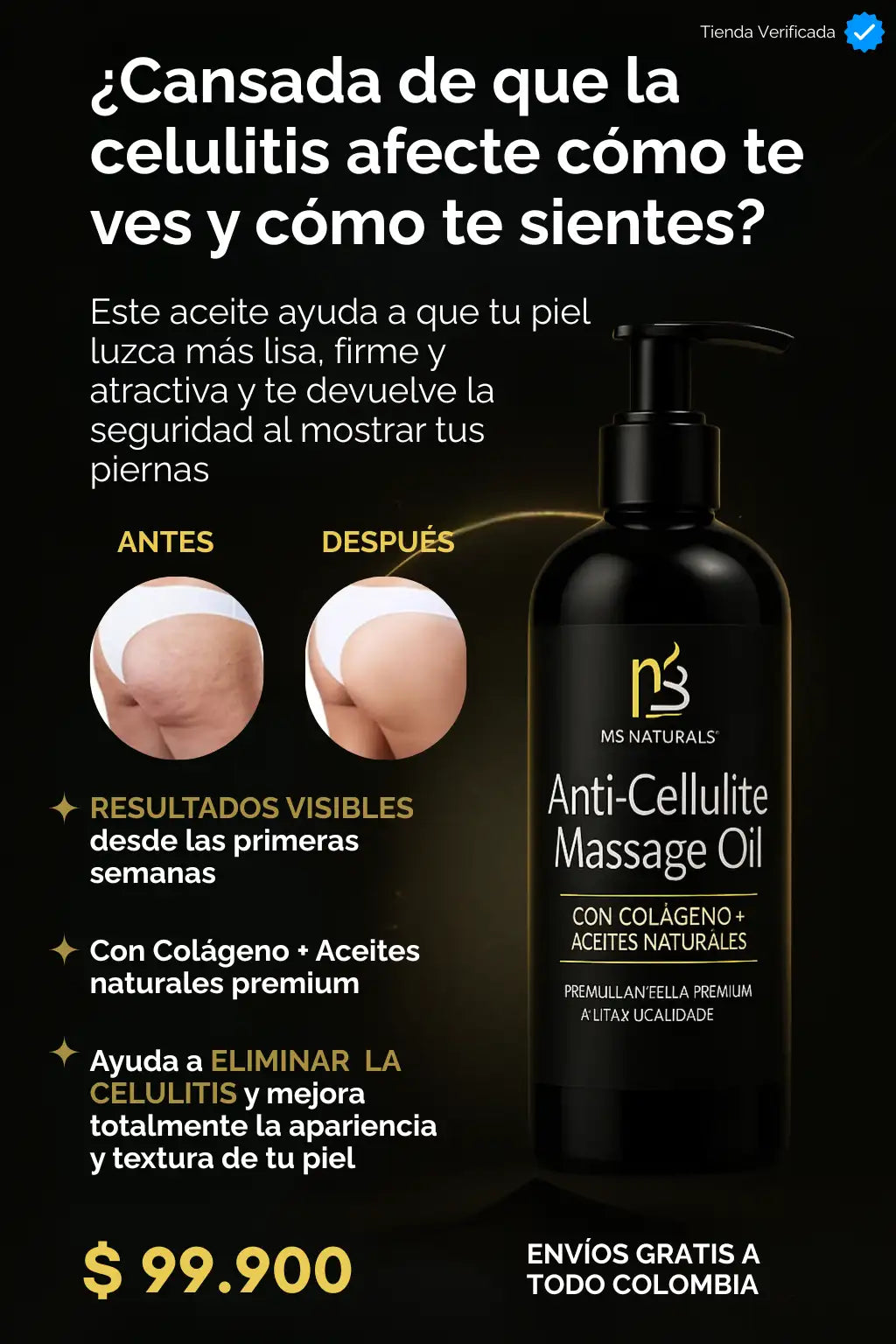El Anticelulitis Massage Oil es muy seguro porque está elaborado con aceites naturales que nutren profundamente la piel. Aporta hidratación, mejora la circulación y deja la piel suave y tonificada. Su uso diario es totalmente confiable y ayuda a mejorar visiblemente la apariencia de la celulitis.